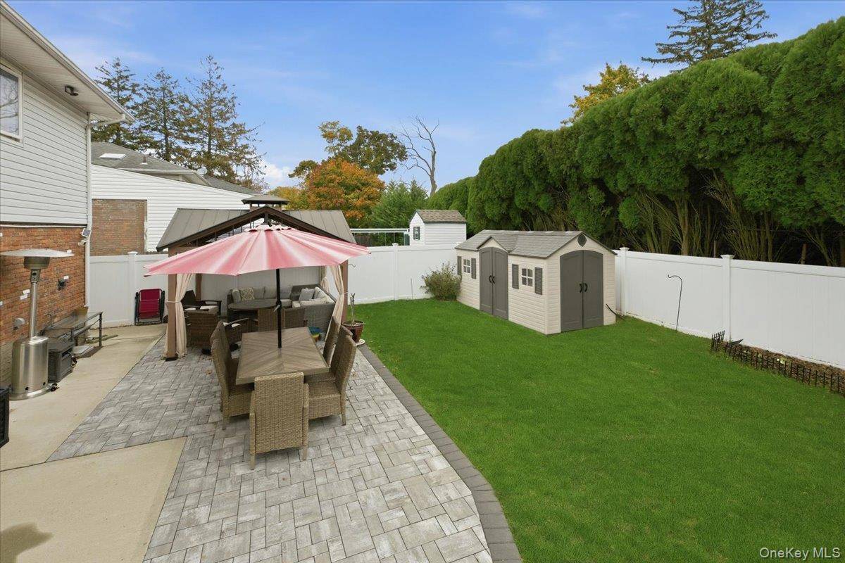 I am thrilled to share details about an exceptional split-level home located in a serene Merrick neighborhood, just south of Sunrise Highway. This meticulously renovated residence seamlessly blends modern amenities with comfortable living.