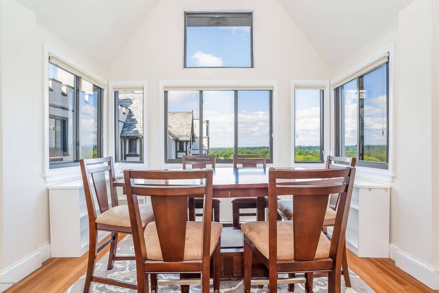 Perched on the top floor of historic Greenwich Lodge, this spacious one-bedroom blends classic character with crisp updates. Soaring 18-foot vaulted ceilings complement hardwood floors and western-facing windows that flood the home with light and frame unobstructed sunset and NYC skyline views. An eat-in kitchen offers generous room for dining and meal prep, and the smart layout supports both relaxed living and effortless entertaining. Building perks include a brand-new fitness center and a rooftop seating area with panoramic vistas. Additional conveniences: common laundry, a locked storage bin, bicycle storage, assigned parking, and pet-friendly policies. Just moments from Greenwich Avenue, enjoy immediate access to shops, restaurants, the public library, and the Metro-North station for an easy commute.